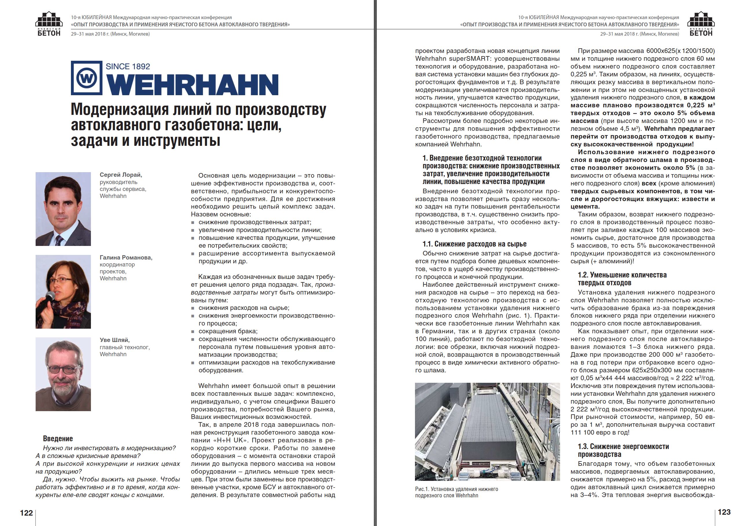 Этой актуальной теме был посвящен доклад Wehrhahn и статья для сборника материалов конференции. Wehrhahn предлагает самые разные решения по модернизации газобетонных линий:
